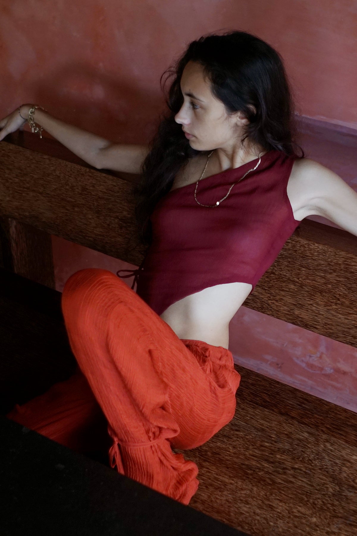 - Styled with the Rumi Barong Red Trousers.