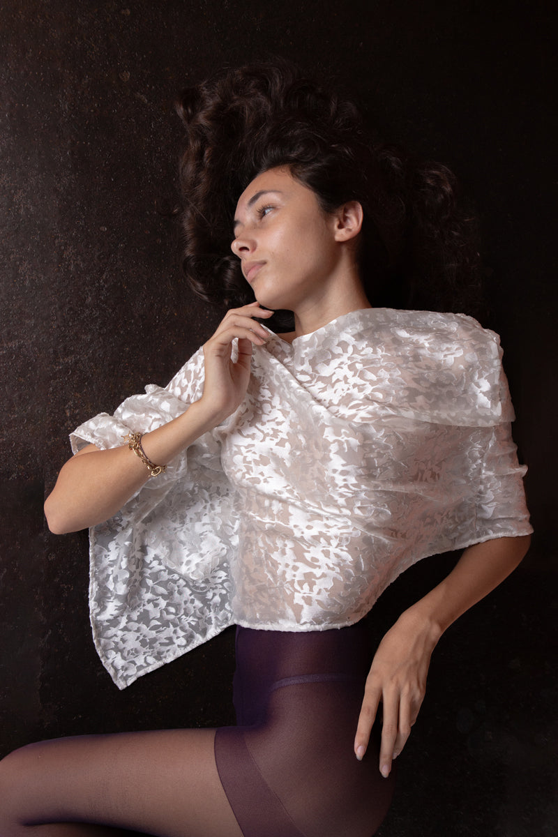 - Crafted from a delicate silk and featuring silk velvet appliqué. Hand wash only.